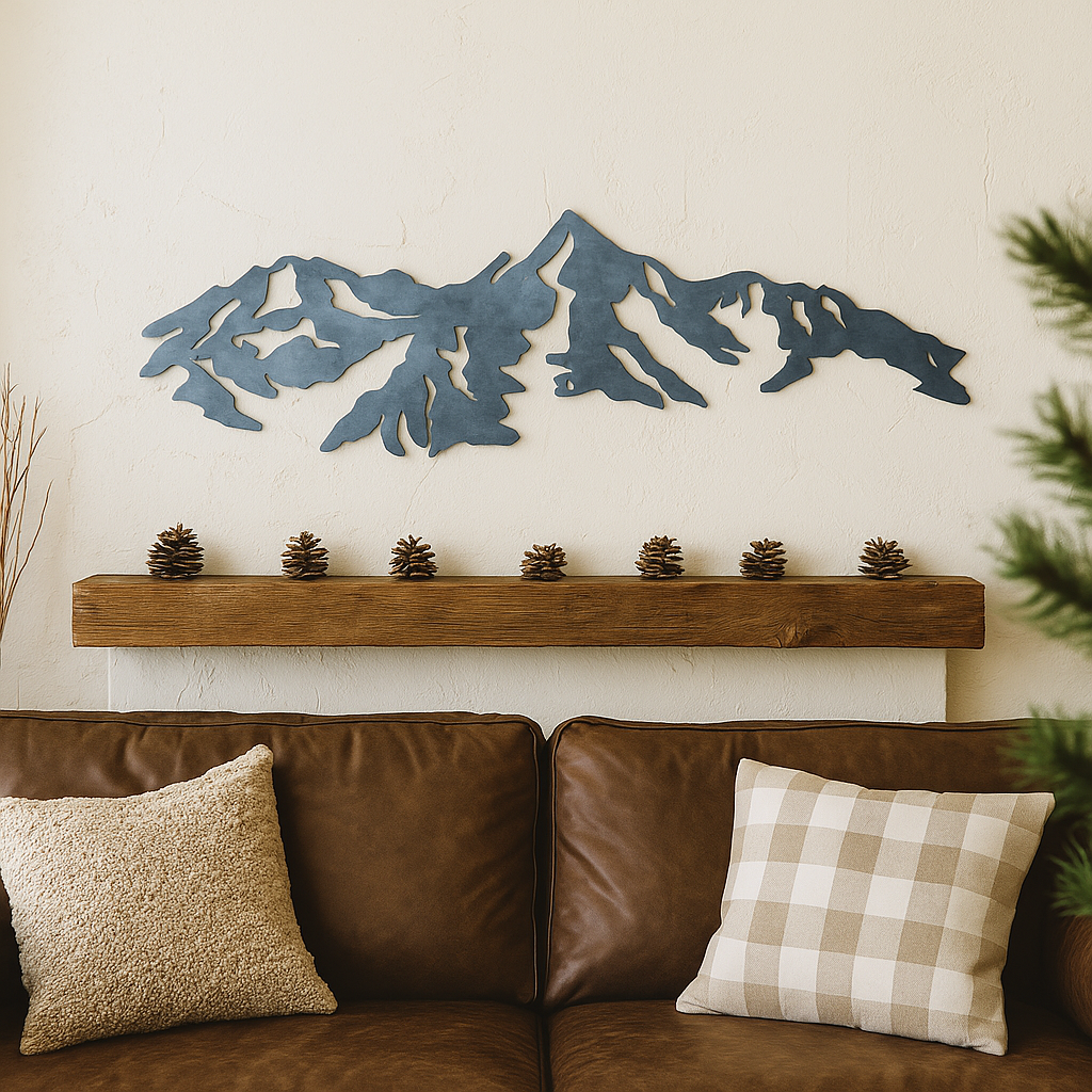 Crafted from durable steel with a powder-coated finish, this wall art is designed for longevity and resistance to wear. Its detailed cut-out design highlights the dramatic peaks of the Rocky Mountains, making it an eye-catching centerpiece above a mantel, sofa, or entryway.