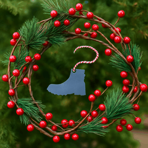 Work Boot Christmas Ornament – Rustic Metal Holiday Tree Decoration – Stocking Stuffer Gift with Outdoor Powder Coat Finishes